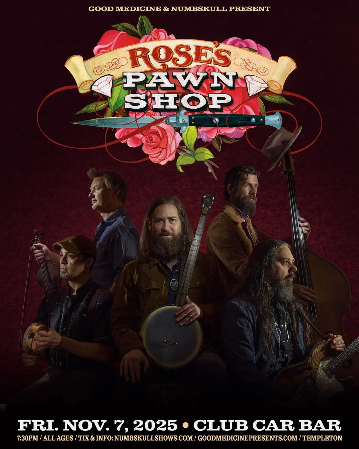 Don’t miss Rose’s Pawn Shop bringing their high-energy blend of Americana, rock, and bluegrass to Club Car Bar. One night only—great music, great drinks, and no cover.